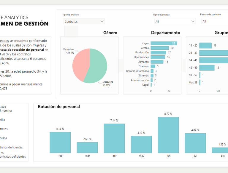 Genera informes claros y visuales directamente a partir de tus métricas y sistemas de gestión.
